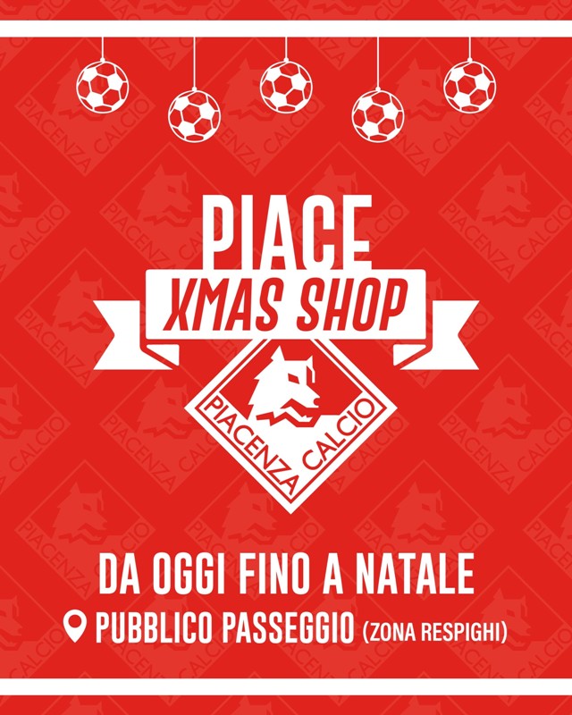 Il Piacenza Calcio è lieto di informare che, da oggi pomeriggio fino a mercoledì 24 dicembre, sarà attivo uno store nel centro della città sito in Viale Pubblico Passeggio all’altezza del Liceo Lorenzo Respighi.