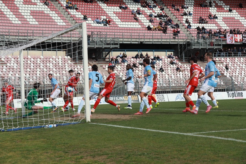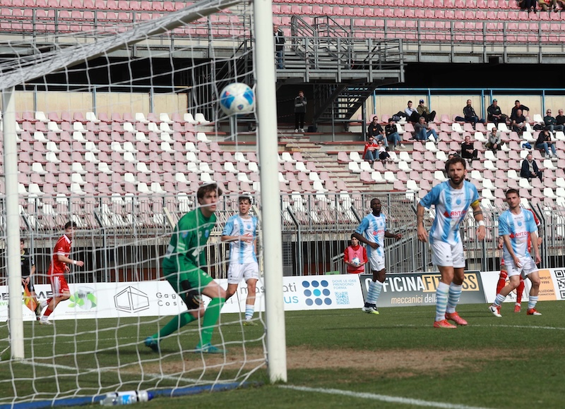 Dopo un primo tempo in cui le occasioni latitano, la gara si accende nella ripresa: prima Ganz alta troppo la mira da buona posizione, poi Maccherini salva su Mustacchio, infine D’Agostino sfiora il palo. Al 66’ D’Agostino sblocca il risultato incornando un traversone di Mustacchio da destra. Tempo 180 secondi e Mustacchio raddoppia con uno splendido sinistro a giro.